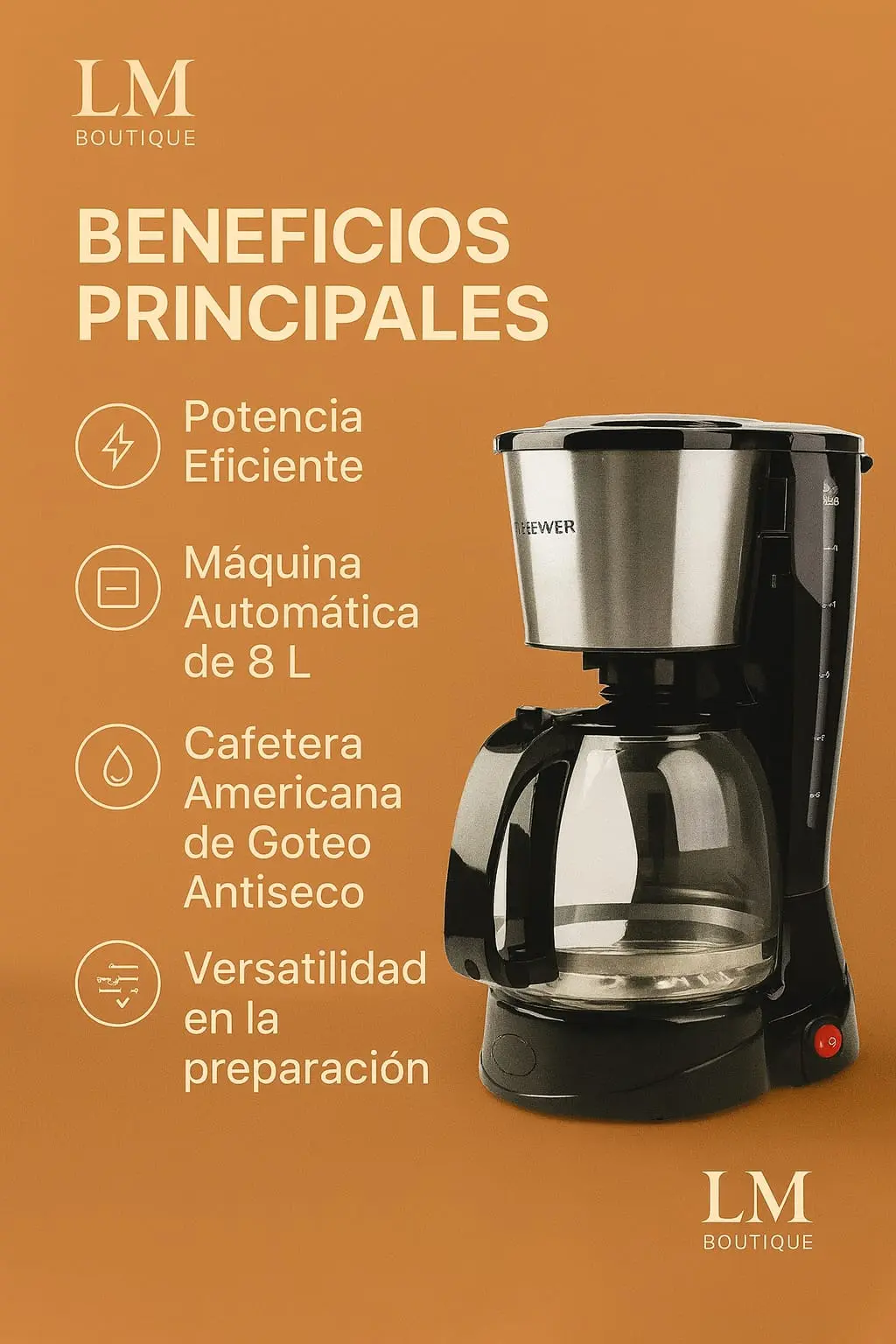La Cafetera Multifuncional Automática 8 L de LM Boutique fue creada para quienes disfrutan del café perfecto, con sabor intenso, temperatura ideal y una experiencia que convierte cada taza en un momento especial.