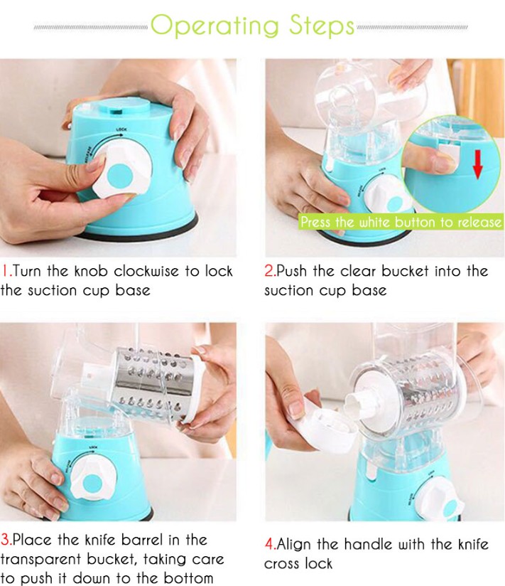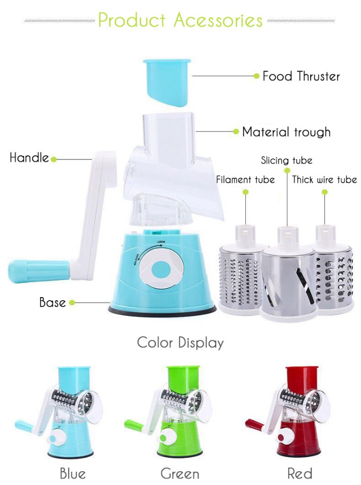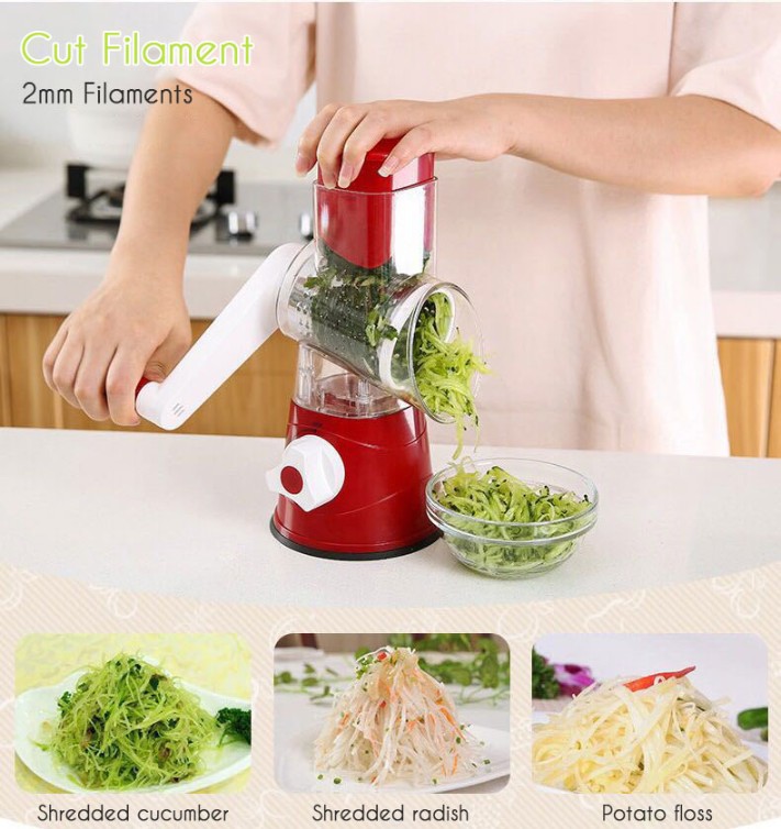 Se pueden cumplir las necesidades: con el rallador giratorio de verduras que contiene 3 cuchillos, puedes satisfacer tus diferentes necesidades de cortar, triturar y triturar grueso.