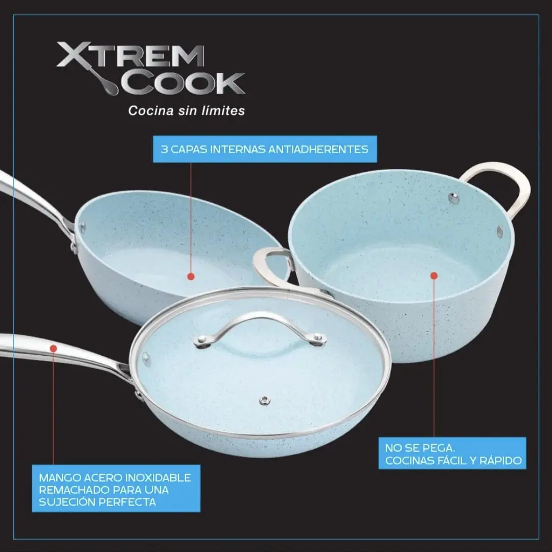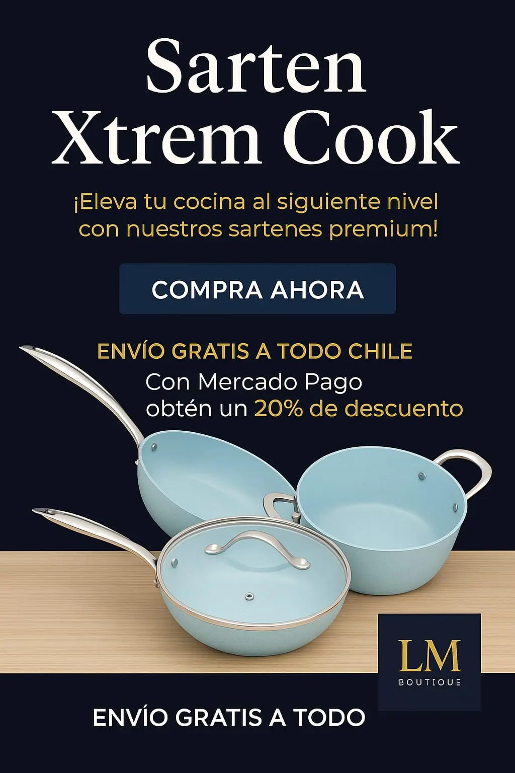 🔥 Set de Sartenes Xtrem Cook de 4 piezas. Fabricados con tecnología antiadherente premium y diseño moderno. Incluye envío gratuito a todo Chile, hoy obten un 20% de descuento. ✨ Cocina con estilo, cocina con LM Boutique